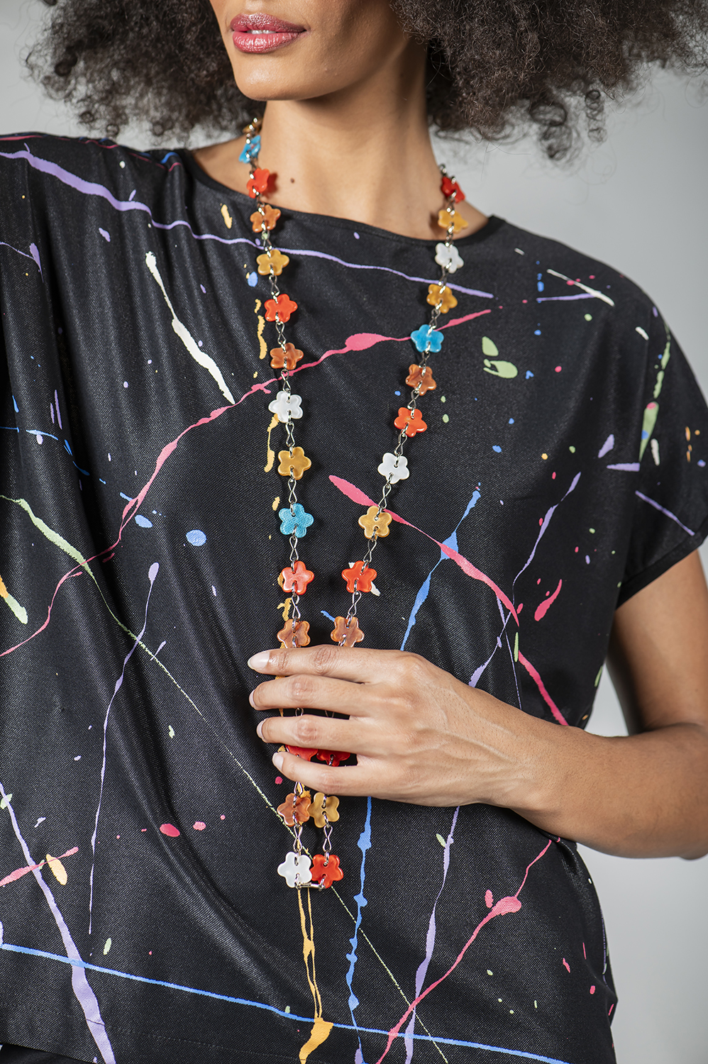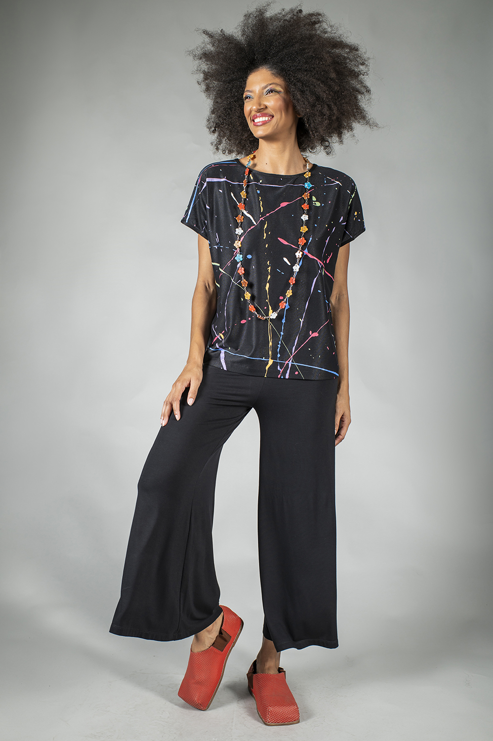 BLUSA PINTADA Á MÃO SOLTINHA LEVEMENTE TRIANGULAR