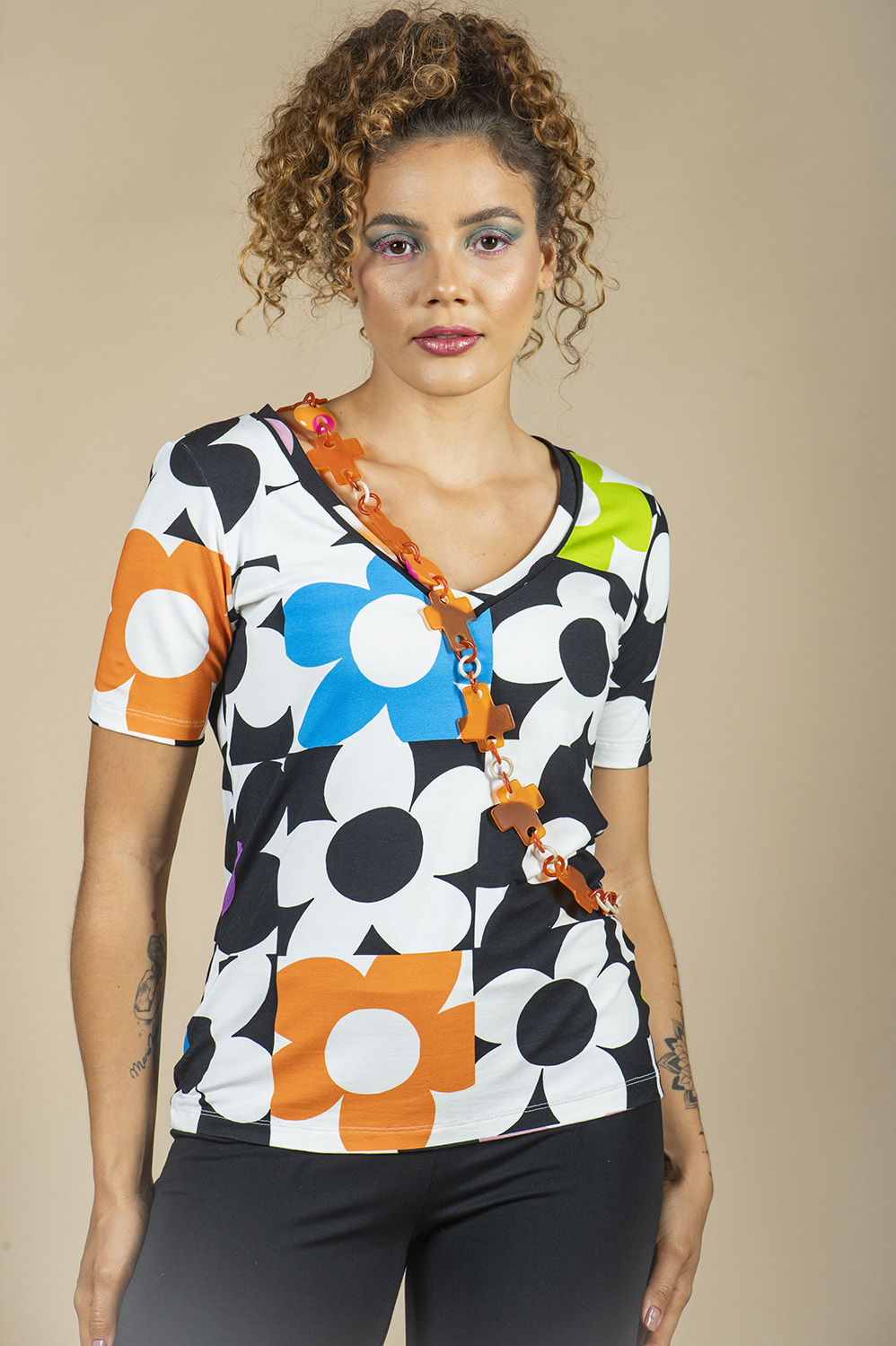 BLUSA SOLTINHA COM DECOTE V E MANGA CURTA