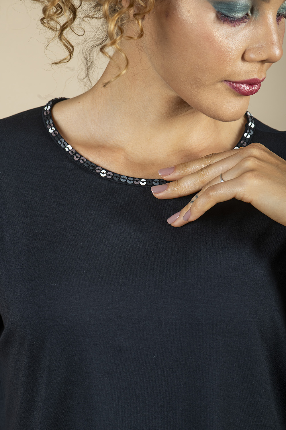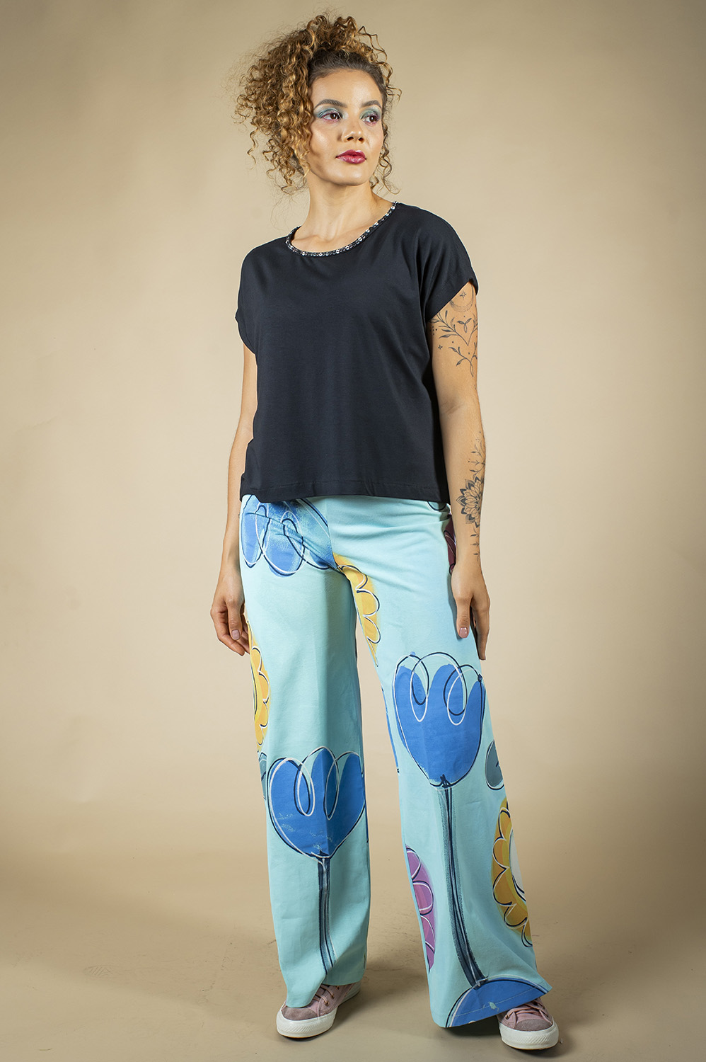 BLUSA SOLTINHA LEVEMENTE MULLET COM CAVA JAPONESA E DETALHE DE CUSTOMIZAÇÃO NO DECOTE
