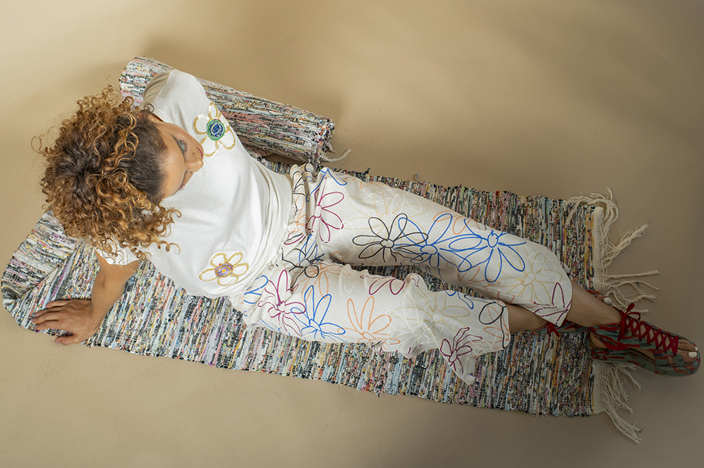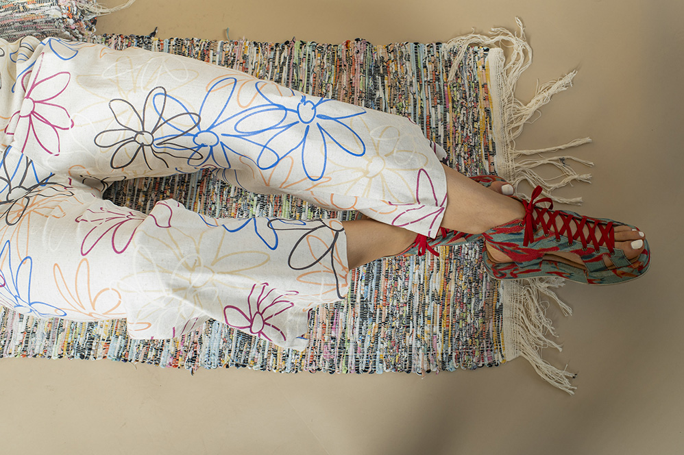 COMPOSIÇÃO: 68% viscose 30% linho 2% elastano – TECIDO PLANO COM ESTAMPA EM SILKSCREEN (TÉCNICA ARTESANAL)