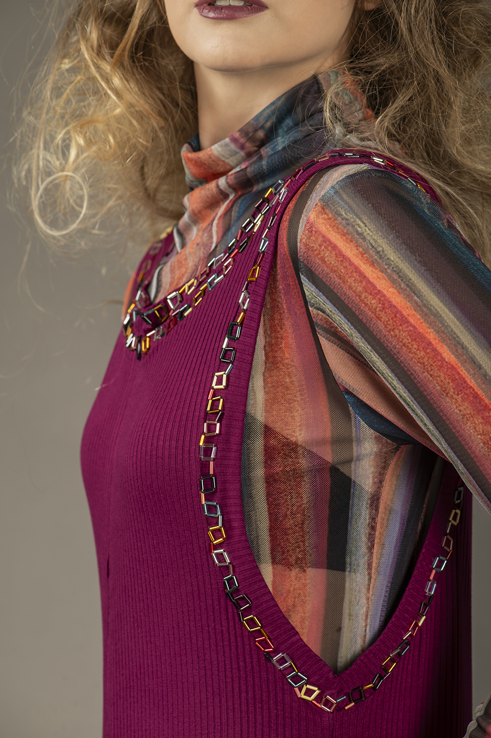 COMPOSIÇÃO: 92% viscose 8% elastano – MALHA CANELADA COM APLICAÇÃO ARTESANAL DE VIDRILHOS
