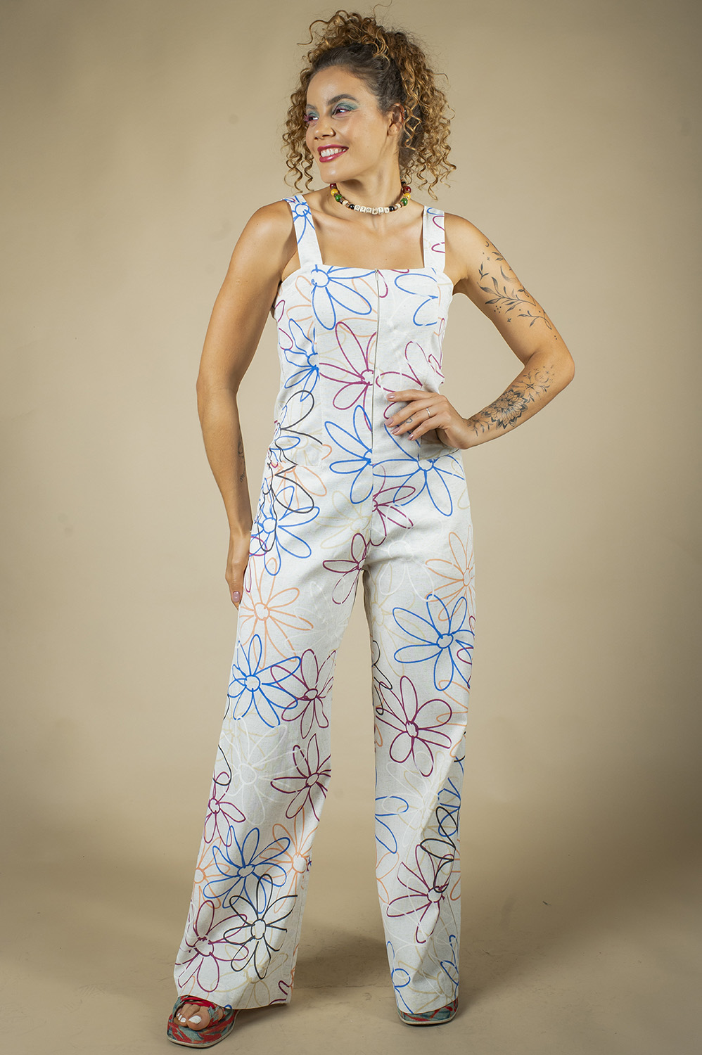 MACACÃO REGATA, RETO, COM RECORTES VERTICAIS E BOLSOS