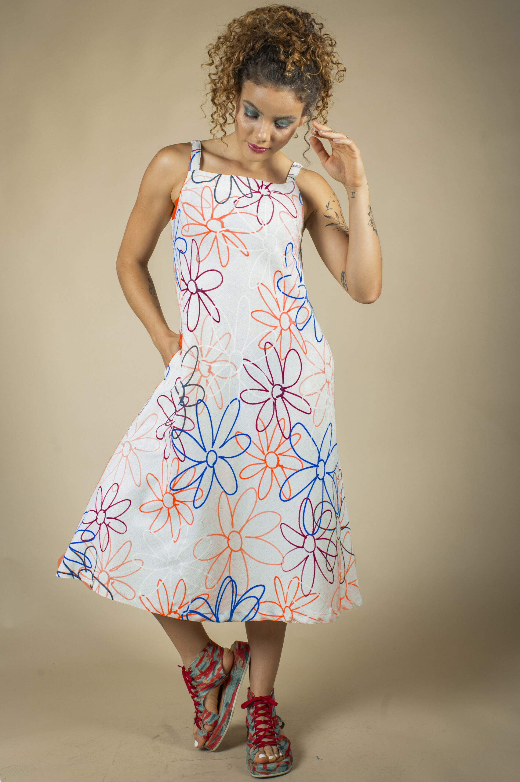 COMPOSIÇÃO: 68% viscose 30% linho 2% elastano – TECIDO PLANO COM ESTAMPA EM SILKSCREEN (TÉCNICA ARTESANAL)