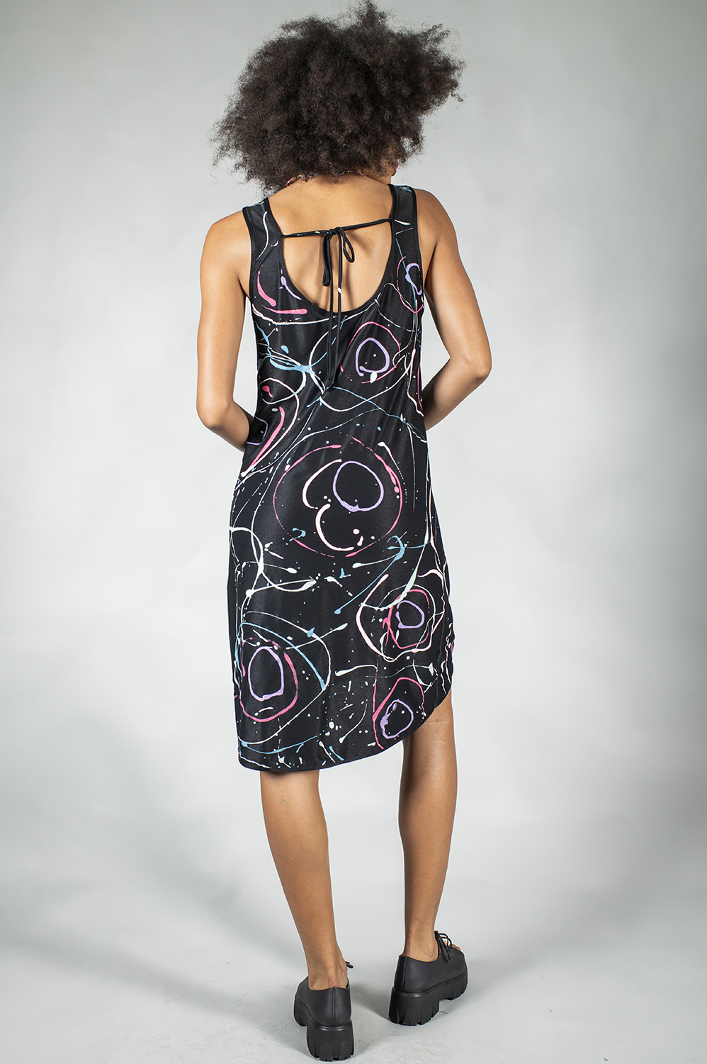 VESTIDO PINTADO À MÃO REGATA COM DETALHE DE AMARRAÇÃO NAS COSTAS